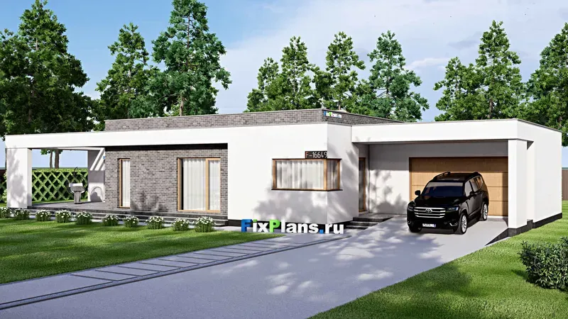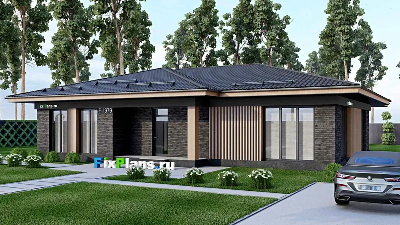 F-3905 - Проект одноэтажного дома 10 на 15, площадью 120 м² с гаражом на 1 машину и 1 спальнями