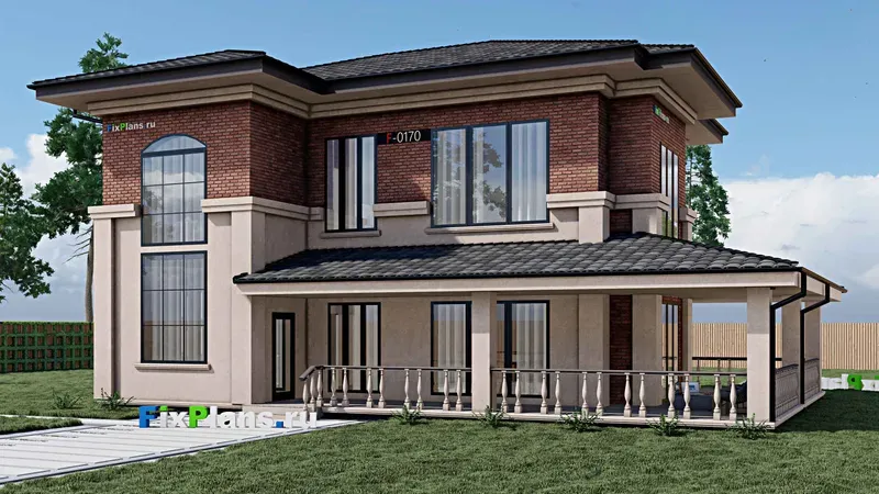 F-0080 - Проект двухэтажного дома 17 на 21, площадью 360 м² с террасой и 4 спальнями