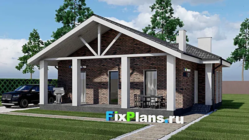 F-7064 - Проект одноэтажного дома 11 на 14, площадью 120 м² с террасой и 2 спальнями